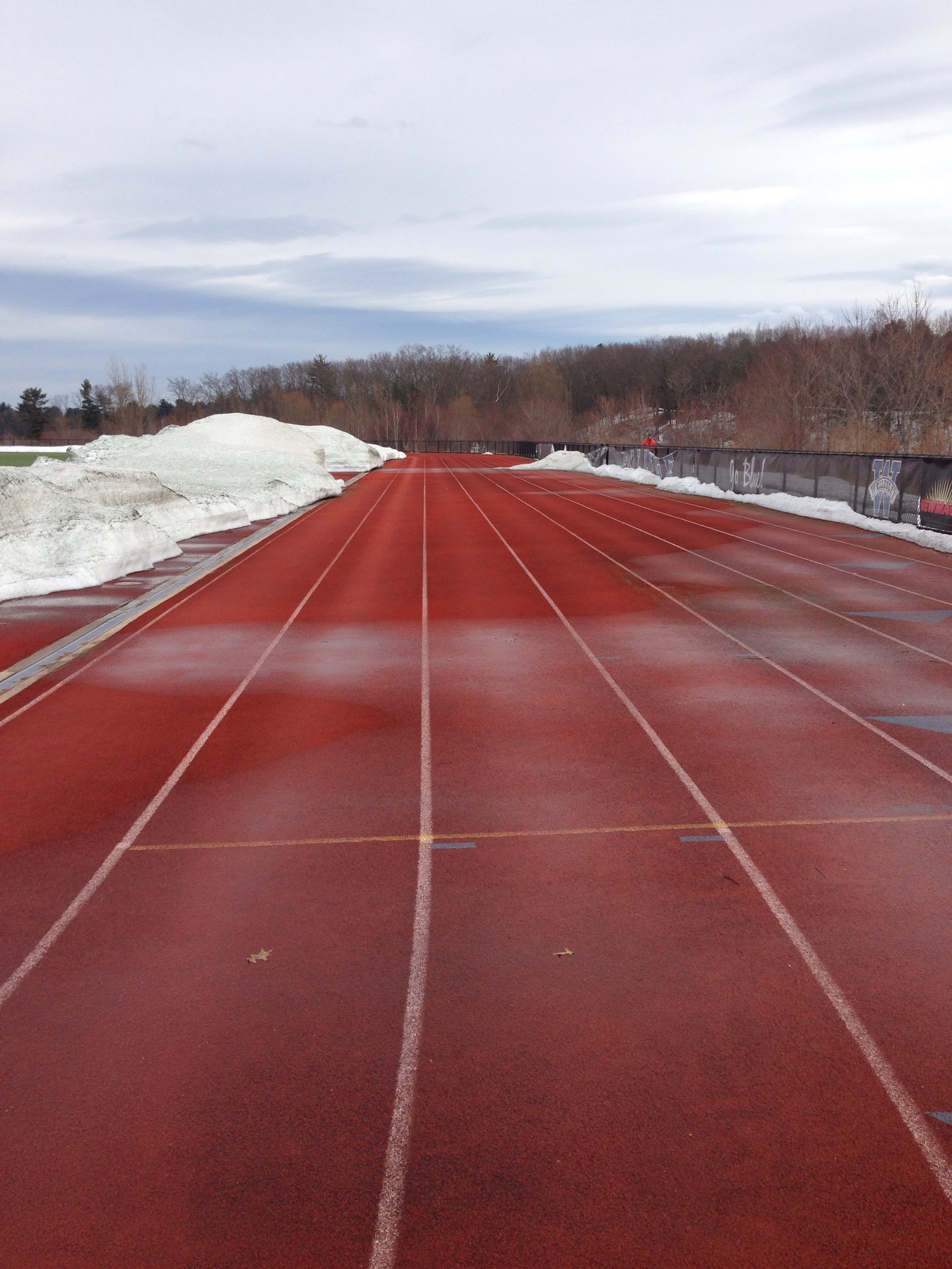 I got out for my first track repeats of spring! I’ve done a couple interval workouts on the treadmill this winter, but there’s nothing like making it down to the track and doing laps.