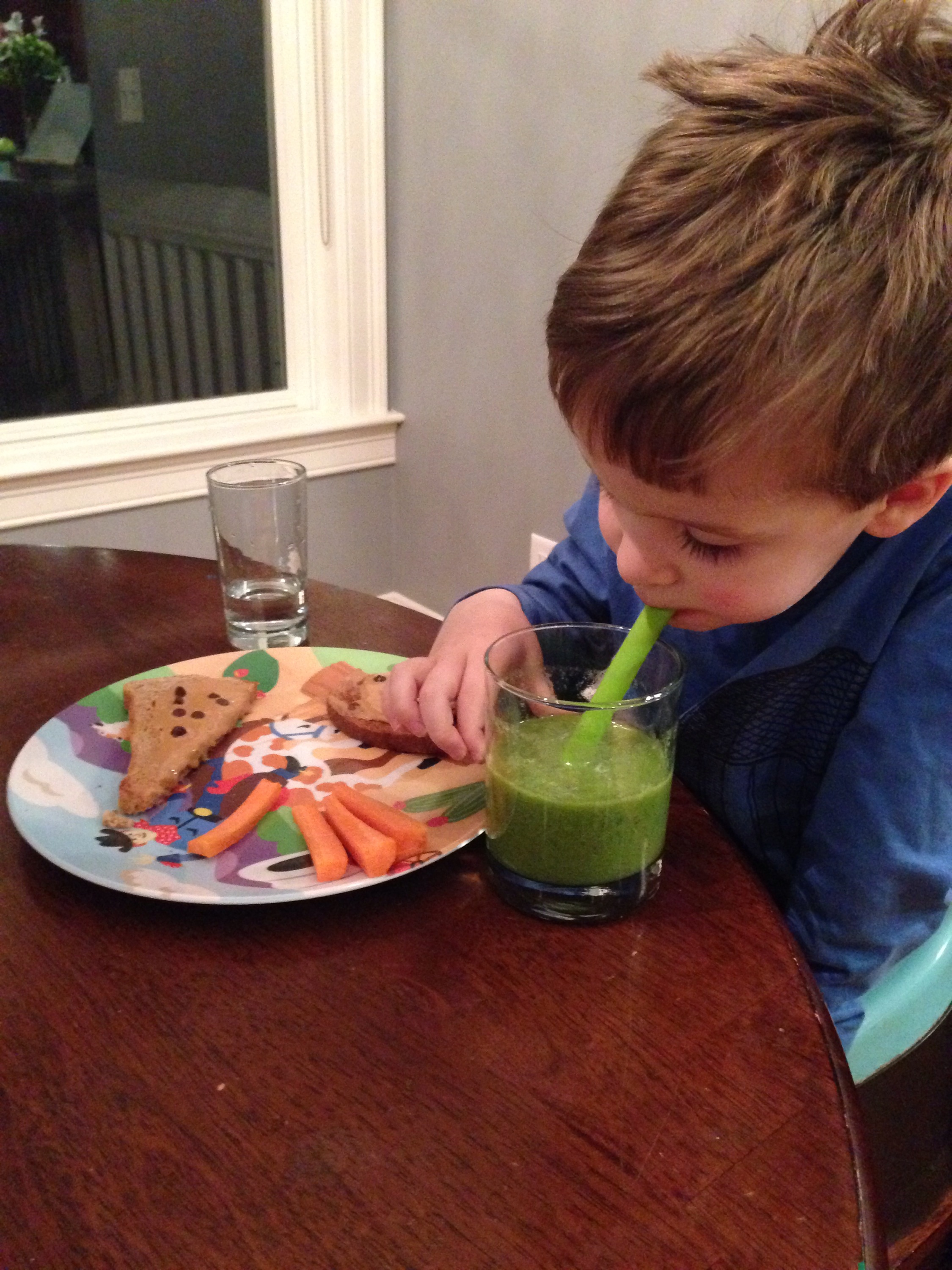 Involve them in food preparation: They’re more interested in trying a food that they picked out in the grocery store, washed, helped slice and prepare.  It’s a lot of work to involve young children in food preparation, but when you can take the time to do it, especially with a new food, it definitely increases the likelihood that they’ll be excited to try it.  That’s how I got Will to drink his first kale smoothie.