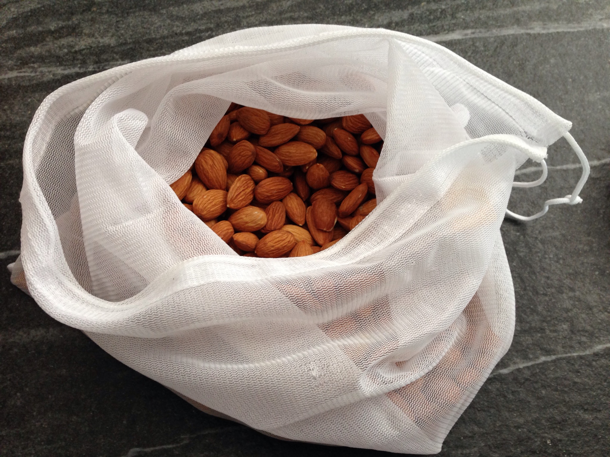 I’m going to start making small changes to reduce the amount of waste our home produces. Step one? Get back in the habit of making almond milk at home to eliminate the cartons I throw away. By bringing a mesh drawstring bag and buying in bulk, I also eliminated the plastic bag I used to bring my nuts home in.