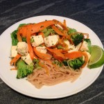 6. To plate, top with tofu and vegetables, and squeeze a lime wedge onto the dish before serving.