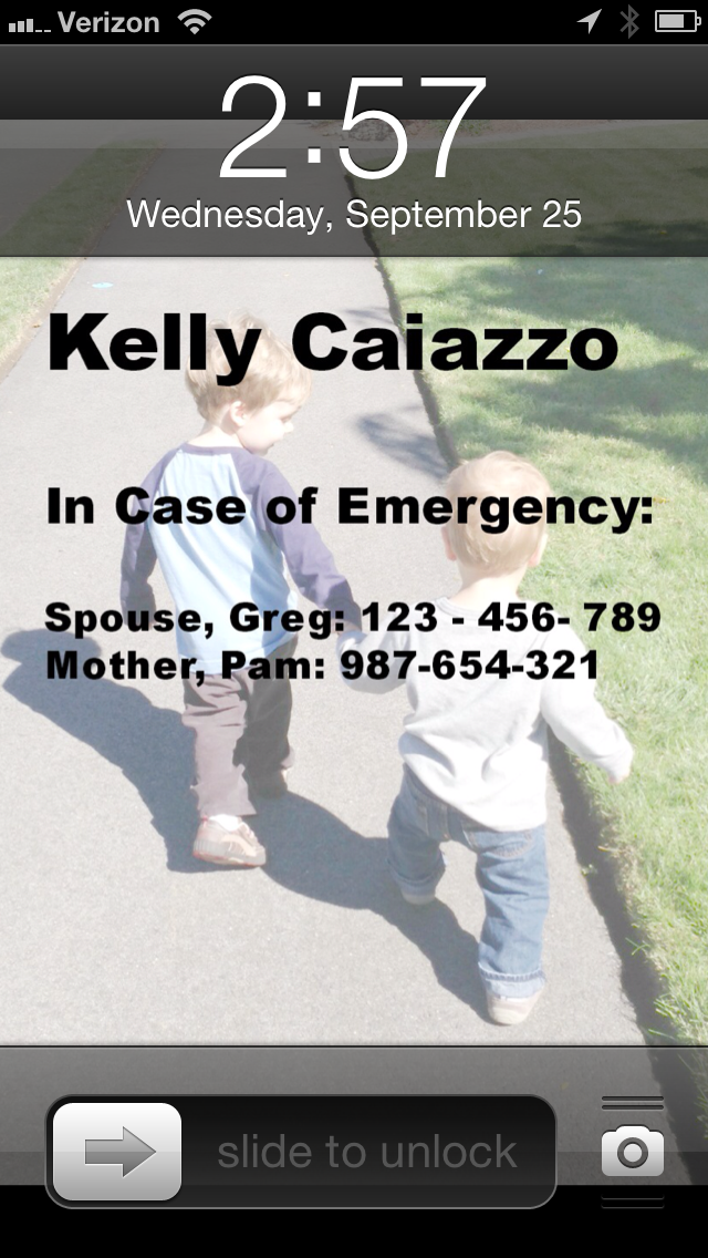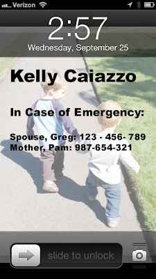 Here’s how I edited a photo to add my emergency contact information. For a tutorial on how to change the photo for your lock screen if you have an i-phone, check out this site.