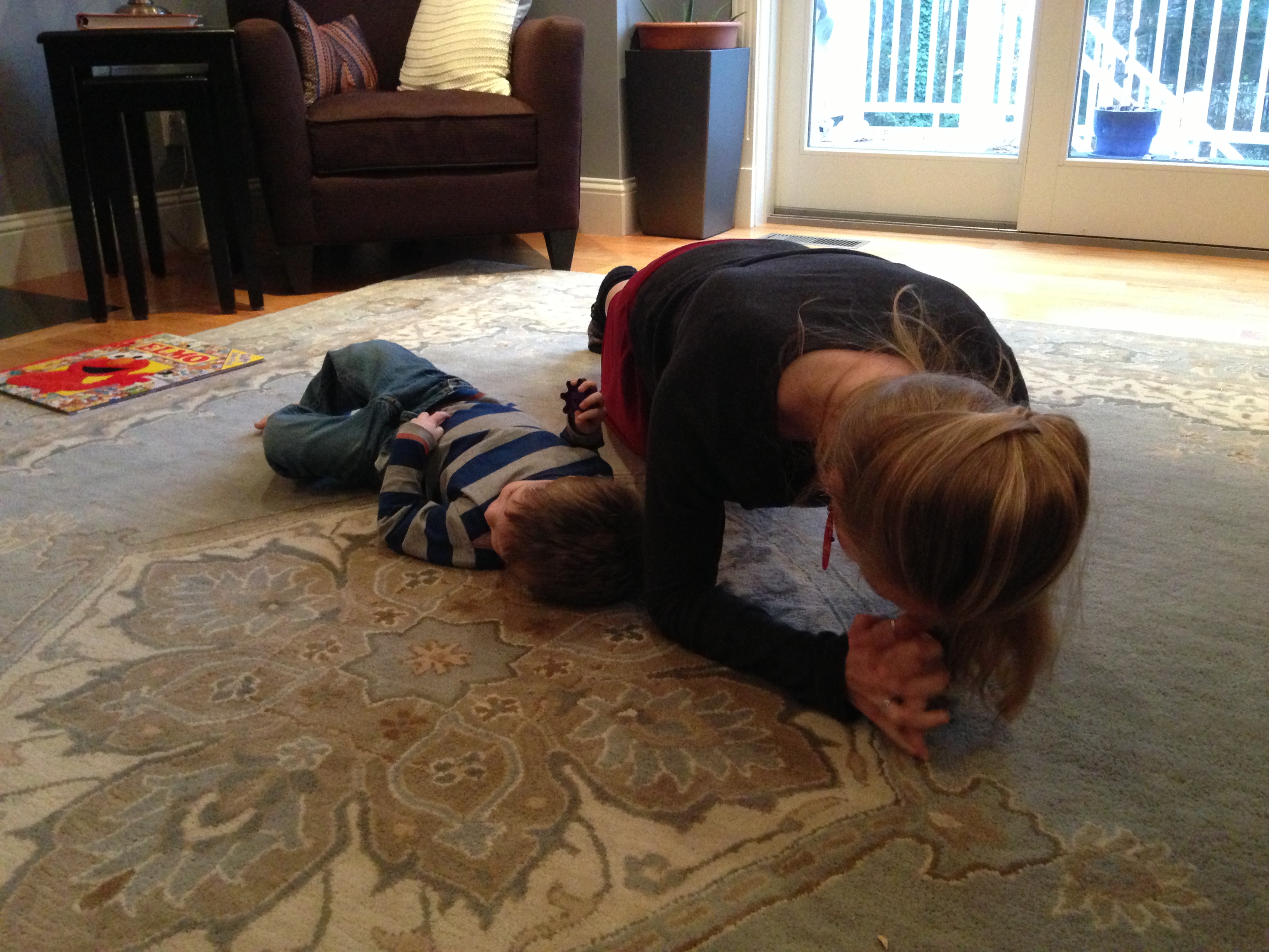 My favorite part is that it takes only a few minutes a day, and I really feel my abs working towards the end. It gives me that light burn afterwards that makes me feel like I’ve actually worked my muscles – pretty awesome for something that takes so little time it’s manageable even if Will and Andrew are playing on the floor next to me! Although, it’s a lot easier if they’re napping because they tend to climb on top of me. Not good for your form. (Form is really important