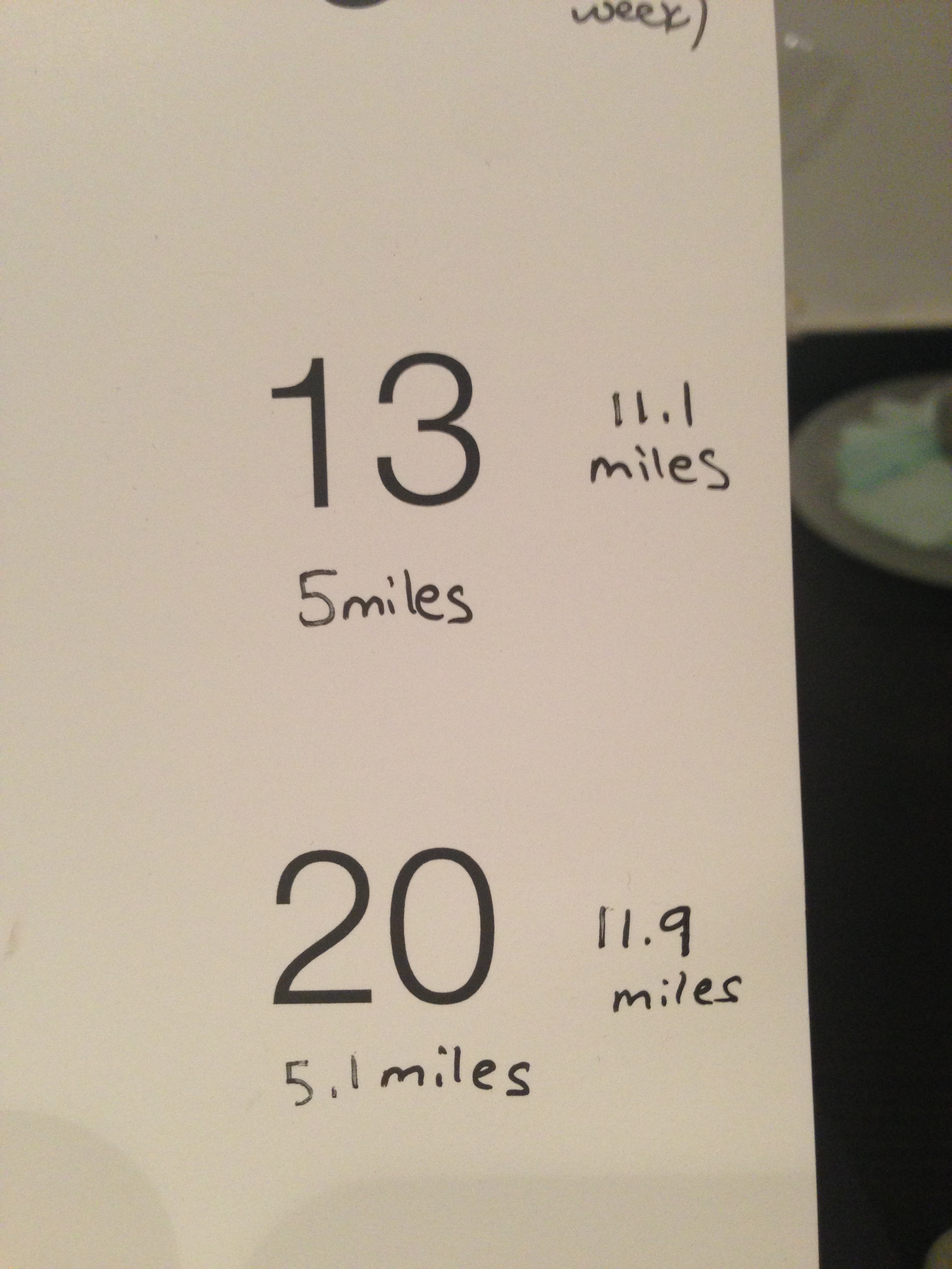 When I started running 10 miles a week, and keeping track of it in writing on a calendar on my bureau where I would see it every day, I started to be able to run longer… my mood was more regularly improved by the exercise, and all of a sudden it seemed reasonable to start working towards a 10k and then a half marathon.