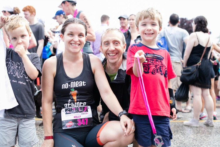 I had a ton of family come see me finish; I got to hug my Dad right before walking down to the swim, and my niece has evidently been playing “Aunt Kelly” and pretending to swim, bike and run. I have a father-in-law to whom I can toss a wetsuit with no explanation, a mother-in-law who always has an umbrella, and a sister-in-law who will trudge around a race course carrying a sleeping toddler through a downpour. Words can’t begin to cover how supportive Greg has been of the idea, the process, the training, the event… I’m a lucky woman.